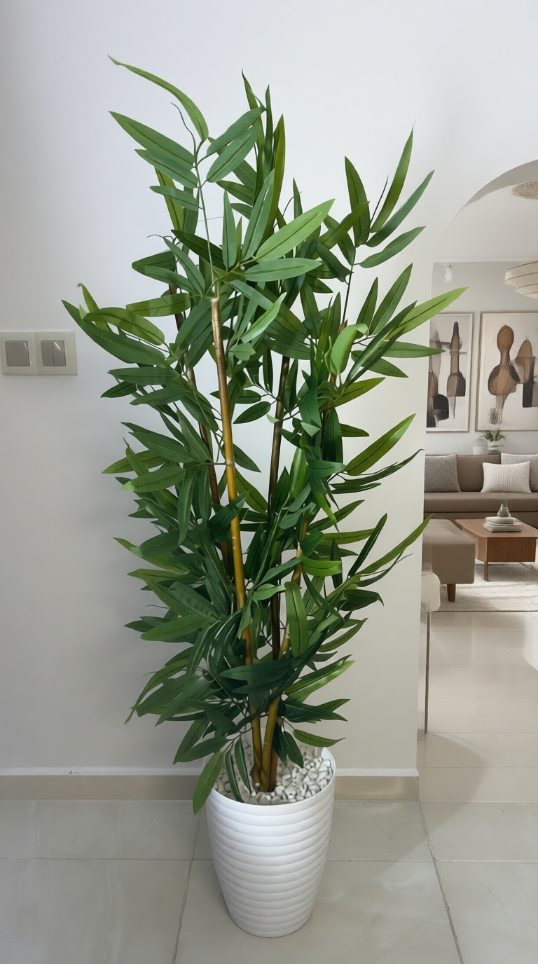 « ديكور دائم، جمال لا يذبل »المواصفات الفنية:-النوع: نبات زينة مزج بين الطبيعي والاصطناعي الاغصان طبيعية 100% الارتفاع: 1م50سم – 1م20سم فما فوق (حسب الطلب ) المادة: أوراق من السيليكون الناعم اللون: أوراق خضراء شبه طبيعية ساق ذهبية/بني فاتح طبيعي 100% – المميزات: لا يحتاج رعاية – لا ري، لا ضوء، لا تقليم ،مقاوم للغبار والأشعة فوق البنفسجية (مناسب للداخل والخارج المظلل)آمن للأطفال والحيوانات الأليفة• سهل التنظيف (مسح بقطعة قماش رطبة) يُستخدم في الديكور الداخلي: مداخل، استقبال، مكاتب, فنادق, مولات🎁 مثالي كـ:– هدية – تزيين أحداث (زفاف، افتتاح)