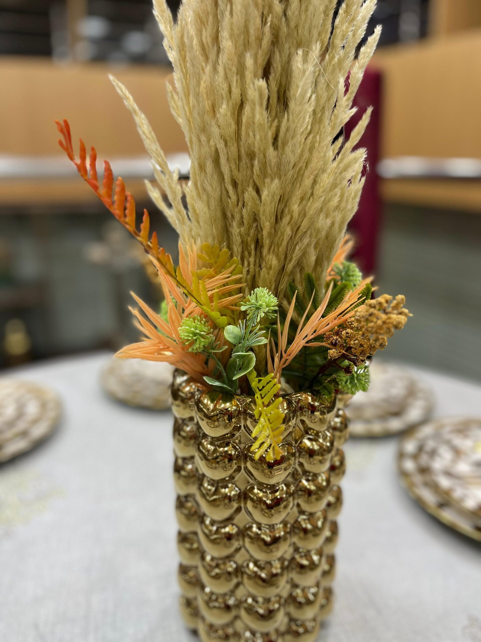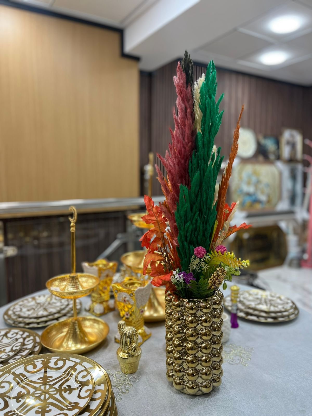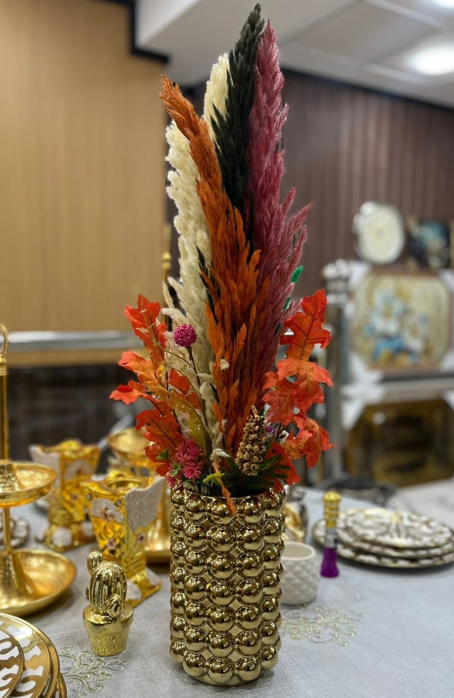 لا تبحث عن زهورٍ تذبل مع مرور الأيام… ابحث عن جمالٍ يُعيد تعريف الديكور فاز « ذات الحراشف » ليس مجرد زينة… بل هو قطعة فنية تُنعش كل غرفة بسحرٍ لا يُقاوم، بتفاصيل تُحكي قصةً من ذهبٍ ونور. – لماذا ستحب « ذات الحراشف »- لا ريّ، لا تربة، لا فوضى — جمالٌ دائم بلمحة عين.- خامة فاخرة تُحاكي اليد البشرية في دقة التفاصيل، مع لمسة ذهبية تُضفي إحساسًا بالفخامة.- مزيج ألوان ساحر: الذهب النقي، البرتقالي الدافئ،والأخضر النابض، يخلق توازنًا بصريًّا يجذب القلب قبل العين.- مناسب لكل مكان