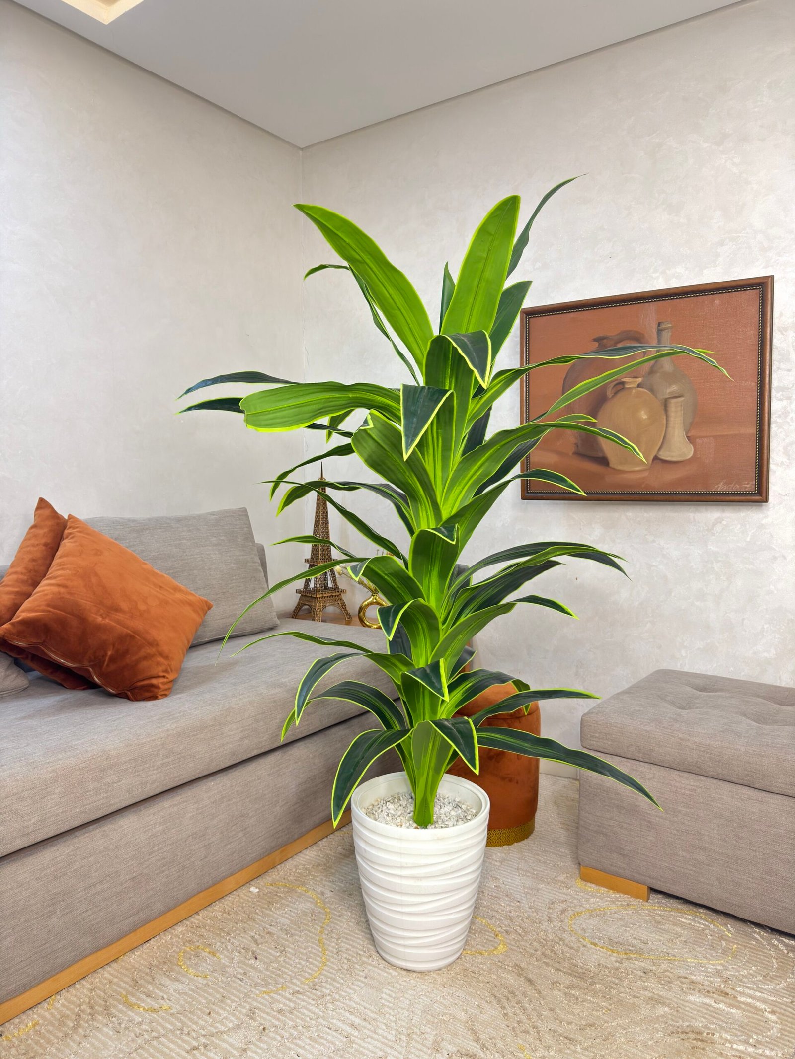 دراكيينا سونغ أوفينديا جمال دائم أوراق خضراء غامقة مع حواف ذهبية لامعة تُضفي لمسة فخامة على أي زاوية. فاخرة لا تذبل، لا تجف، وعاء عصري على قوائم رفيعة يناسب الديكور العصري والكلاسيكي – الارتفاع 1م70سم–1م80سم – الوعاء متوفر ب 3 الوان ⚫⚪🟡 أوراق بوليستر لامعة، جذع PU حصى بيضاء – الاستخدام : داخلي فقط — لاظ يحتاج ريّ، أو عناية🎁 اطلب الآن التوصيل خلال 24 ساعة!